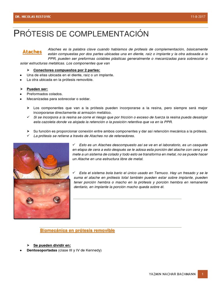 Prótesis completa con sobredentaduras corregida. Los ataches, tipos y utilidades en rehabilitación oral. Esto nos permite futuras correcciones en el trabajo final. Los retenedores por fricción son conocidos como ataches que viene del francés attachement y significa ligadura. Los ataches se pueden desajustar o desgastar con el uso e incluso llegar a romperse.